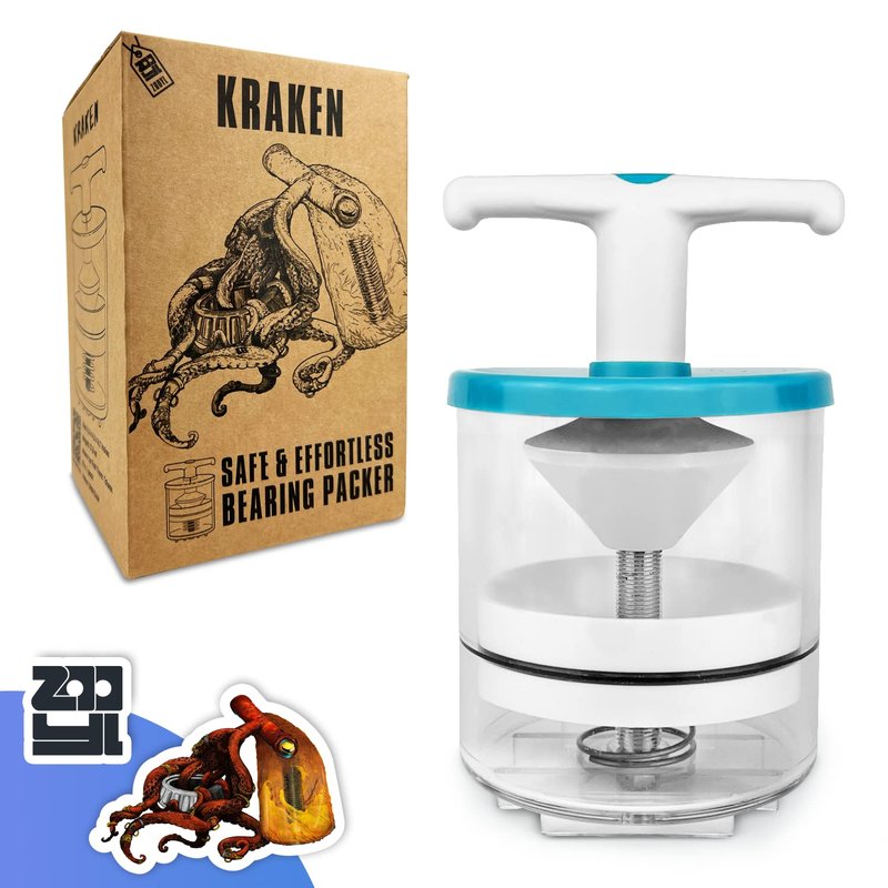 The ZOOYL Upgraded Portable Rotation Hand Bearing Packer Tool is a specialized tool that helps you inject bearing grease into bearings quickly, easily, and effortlessly. It also comes with 50-Inch drop protection and an Automatic Bearing Center Locator to help you work on bearings up to 3 1/2" O.D.