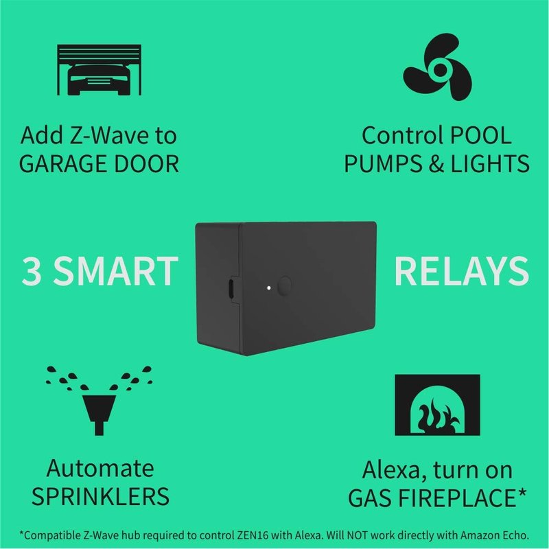 - 3 RELAYS IN 1: Control 3 dry contact relays independently with one MultiRelay. Connect an optional wall switch for manual on/off control (dry contact only, NO voltage on the input side) or use your Z-Wave hub (required, sold separately) for wireless control and automation. Your smart speaker is NOT a Z-Wave hub. Does NOT fully work with Wink or Z-Wave alarm panels like Ring, Vivint, or Alarm.com (R1 control only). Custom edge driver required for SmartThings, go to Zooz support page for details.