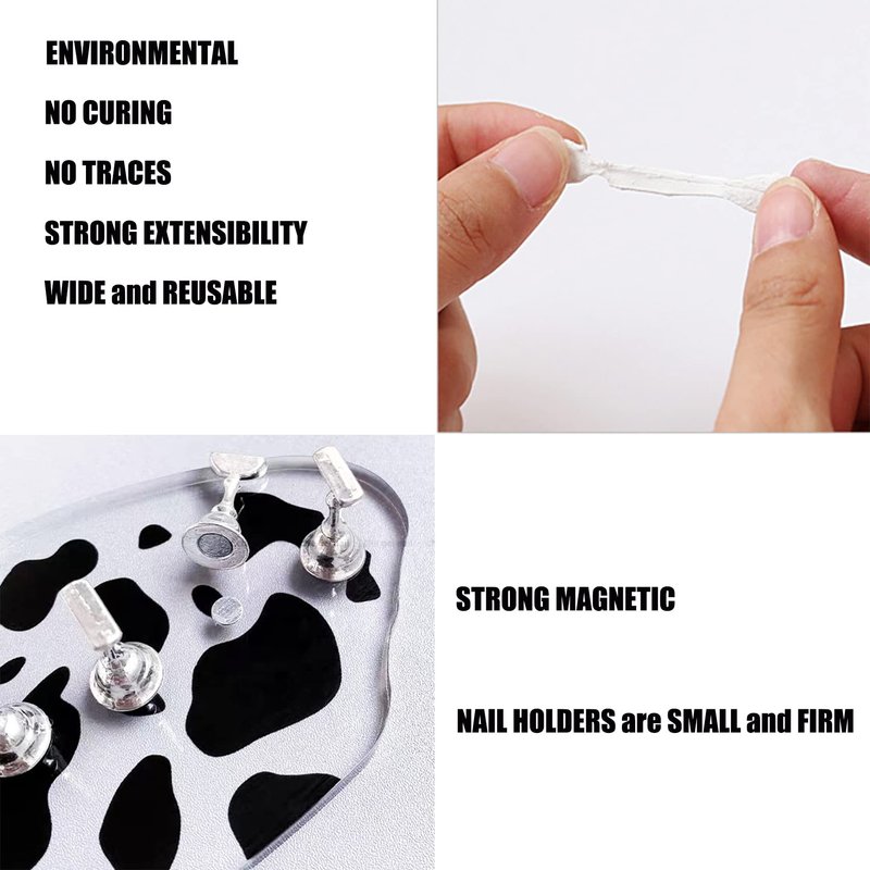 - 【Manicure Set】Our package includes a cow-patterned acrylic nail base and 5 metal practice nail holders, plus with 42 pieces of white reusable putty