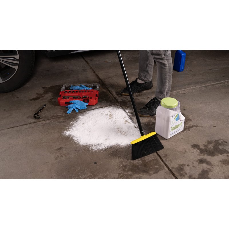- SUPER EASY TO APPLY AND REUSABLE – Just pour, mix and sweep! Zorbent’s propriety formula quickly encases and soaks up all liquids, leaving surfaces clean and dry. Mix until the mess is absorbed then sweep. Zorbent is the ONLY reusable spill power! Keep using until the powder is fully absorbed. Each 5 qt jug absorbs up to 1 gallon.