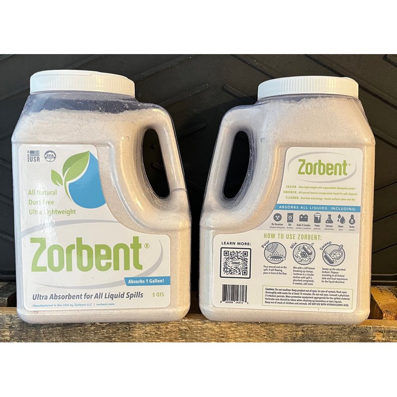 - ZORBENT IS LIKE HAVING A PERSONAL CLEAN-UP GENIE in every 5 qt container! Never say “Oh No!” again. Just take out Zorbent and put it to work, and in a jiffy, the surface is clean, dry, dust and odor free. Store an extra container in your garage and car and always have the Genie handy. Proudly made in the USA.