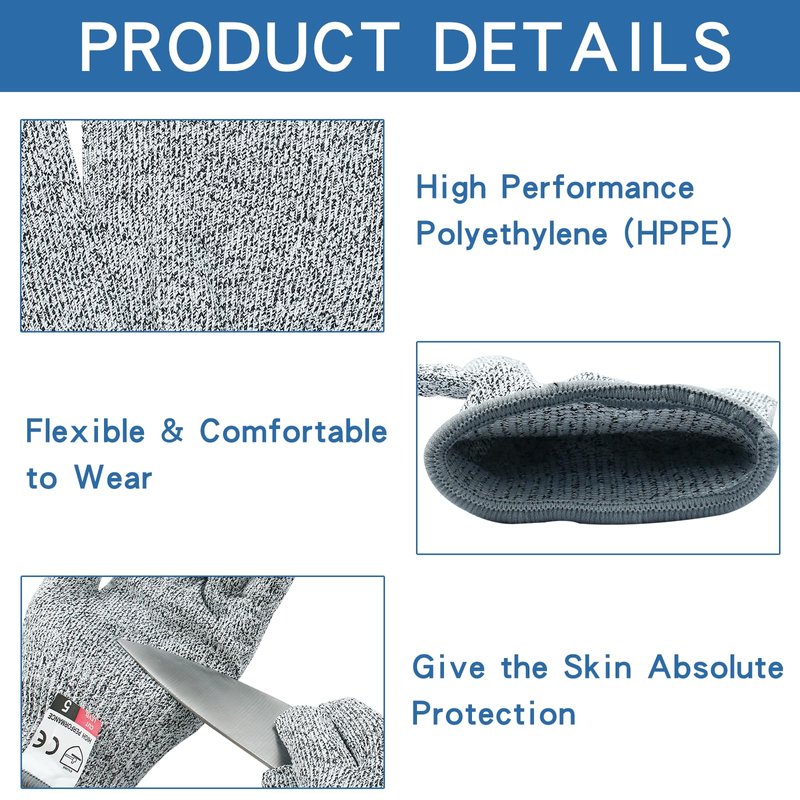 - Level 5 Protection - Kids Safe Cut Resistant Gloves are made of HPPE (High Strength Polyethylene) and nylon, which are awarded with EN388 level 5 cut resistance certification, 4 times stronger than leather. Protect your hand from cuts and abrasions.