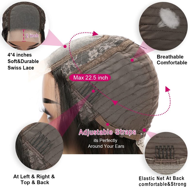 - 3.Easier to Wear, Breathable Wig Cap : Glueless wigs human hair with combs and adjustable straps, easy adjustment, medium cap size(22 inch - 22.5 inch) stretchable material wear comfortably. It suitable for any situations like parties, birthday, travel, graduation, wedding, daily life.