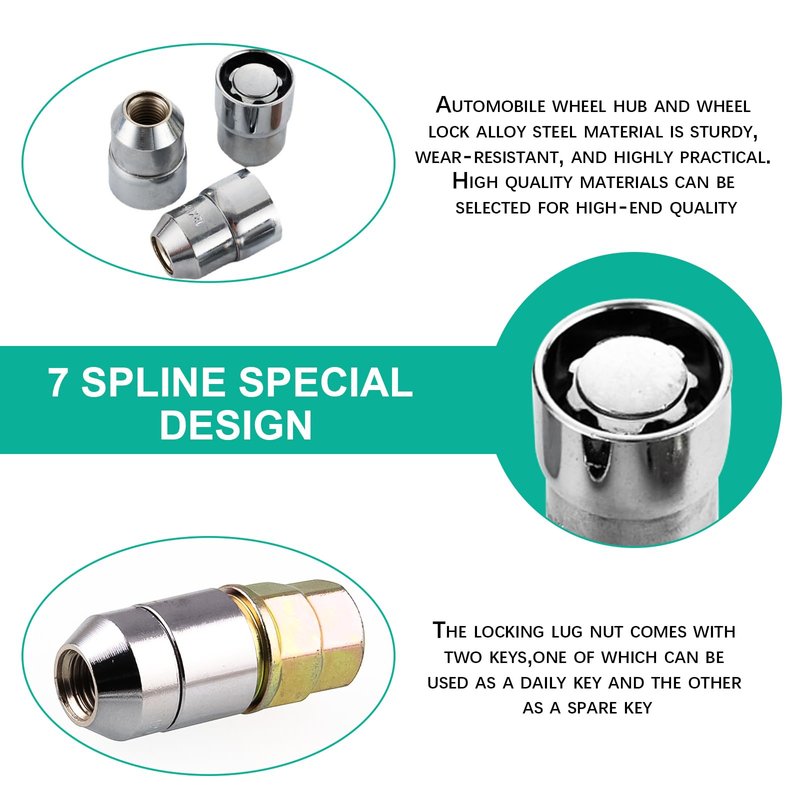 - Unique Rotating Design: Our wheel lock nut outer ring has a rotatable steel ring, which can effectively prevent the wheel lock nut from being forcibly opened, increasing safety.