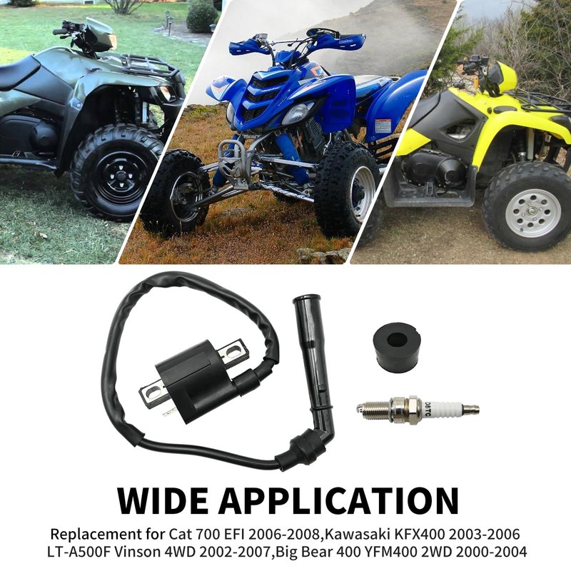 Zreneyfex Ignition Coil and Spark Plug Kit Compatible with Arctic Cat 700 EFI Compatible with Kawasaki KFX400 Compatible with Suzuki LT-A700X KingQuad Quad Runner Compatible with Raptor 660 YFM660