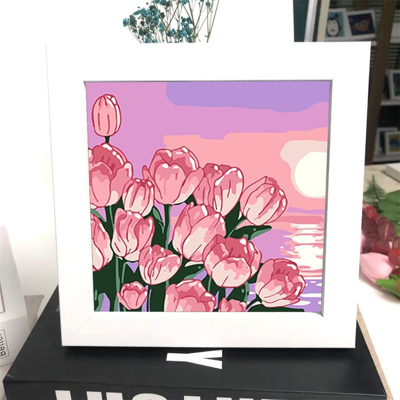 ZRIZQ Paint by Numbers for Adults Beginner Kids Ages 6-8-12 with Wooden Frame,Easy Paint by Numbers for Gift Home Decoration 8x8 Inch(Flowers 8)