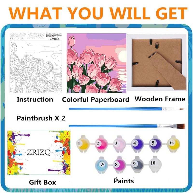 - 【WHAT YOU WILL GET】Painting by numbers for kids includes colorful paperboard (with frame),2 pcs Paintbrushe,1 set high-quality acrylic paint,1 paper copy of numbered canvas for reference.Packaged in a colorful gift box,it's the perfect gift to give to friends and loved ones.