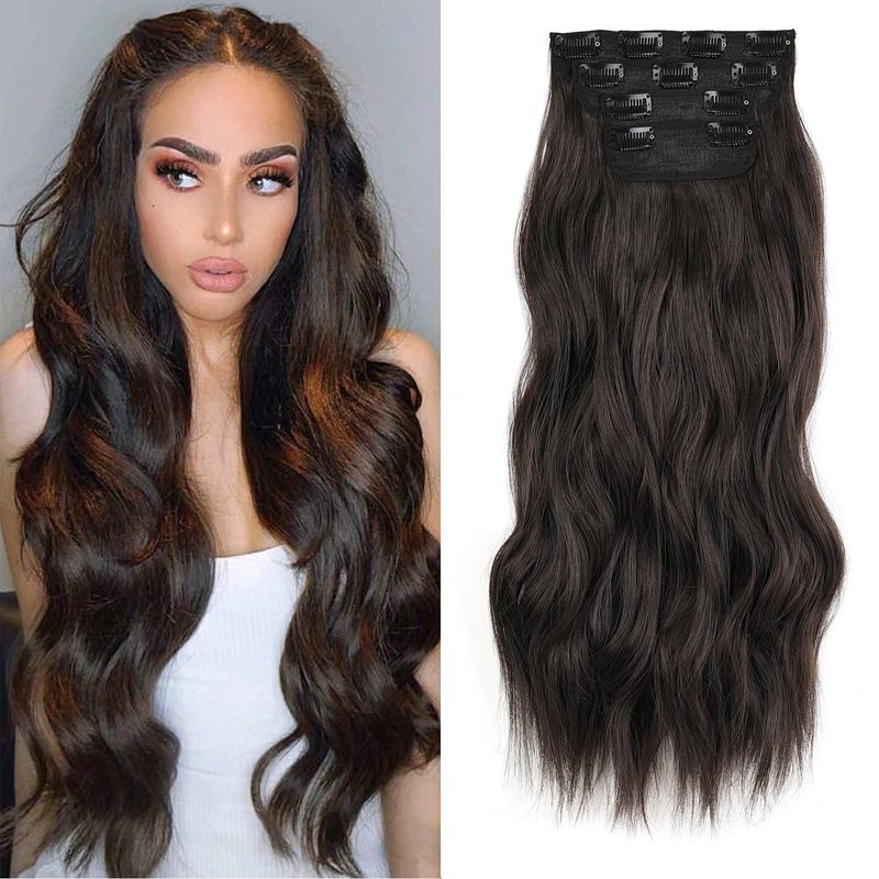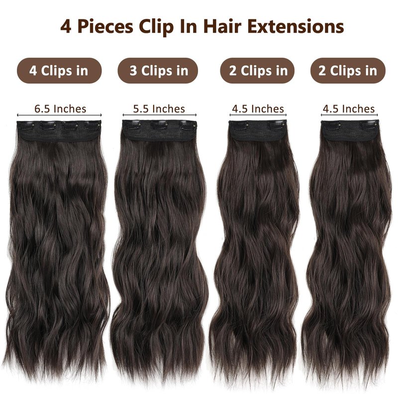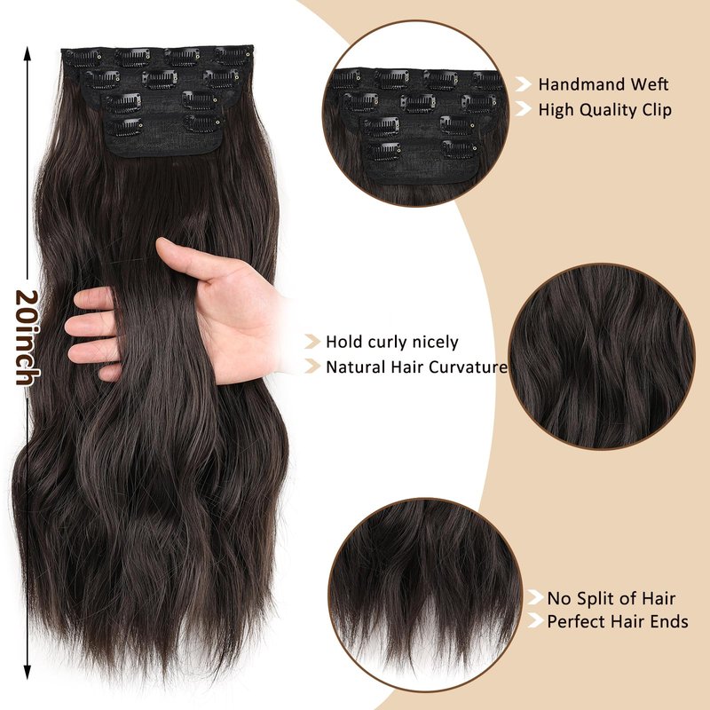 ZRQ Clip in Hair Extensions for Women,Chocolate Brown with Dark Brown 4PCS 20 Inch Hair Extensions Clip Ins Soft Hair Pieces for Women Thick Long Wavy Hair Extensions #5/6