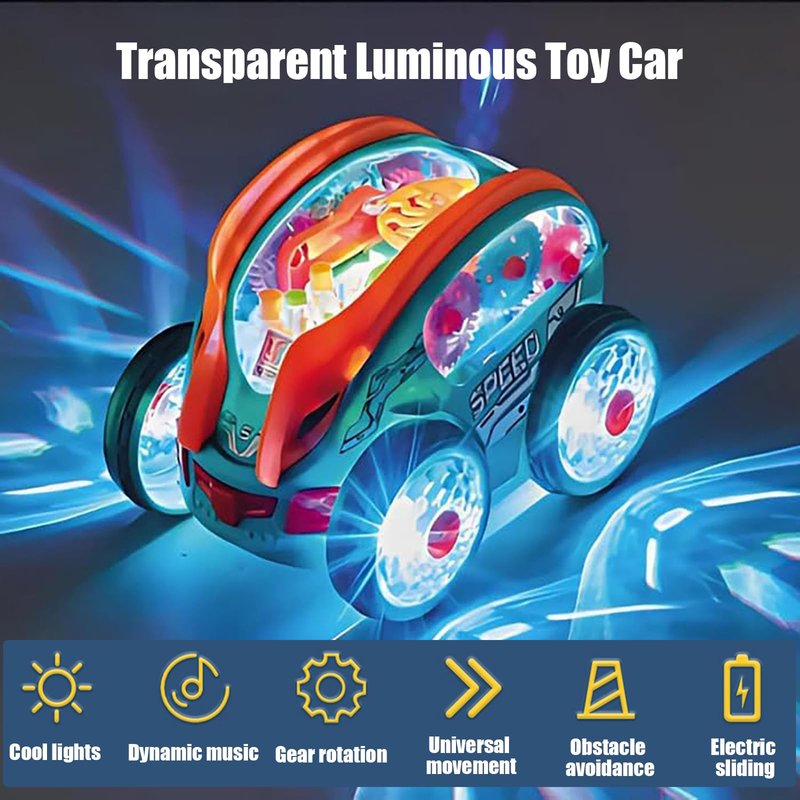 ZRW Speedlite Toy Car,Transparent Luminous Toy Car,Speedlite Dynamic Gear-Powered Car,Bump and Go Toy Cars with Colorful Moving Gears,Suitable for Children Aged 1-3 Years (with Accessories)