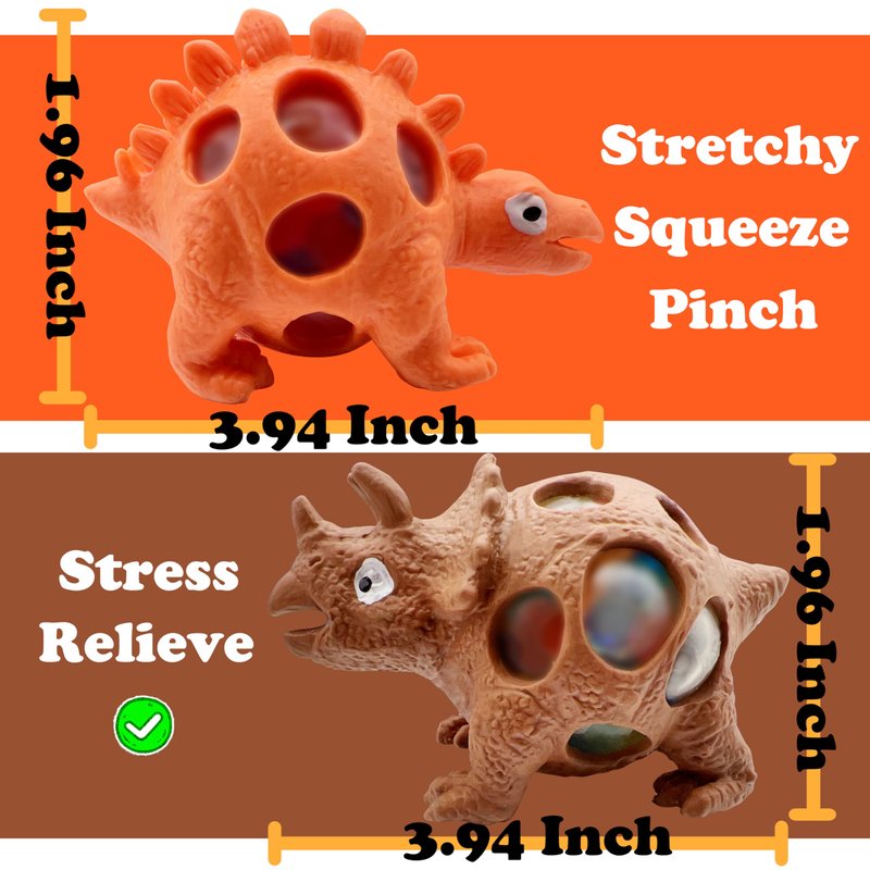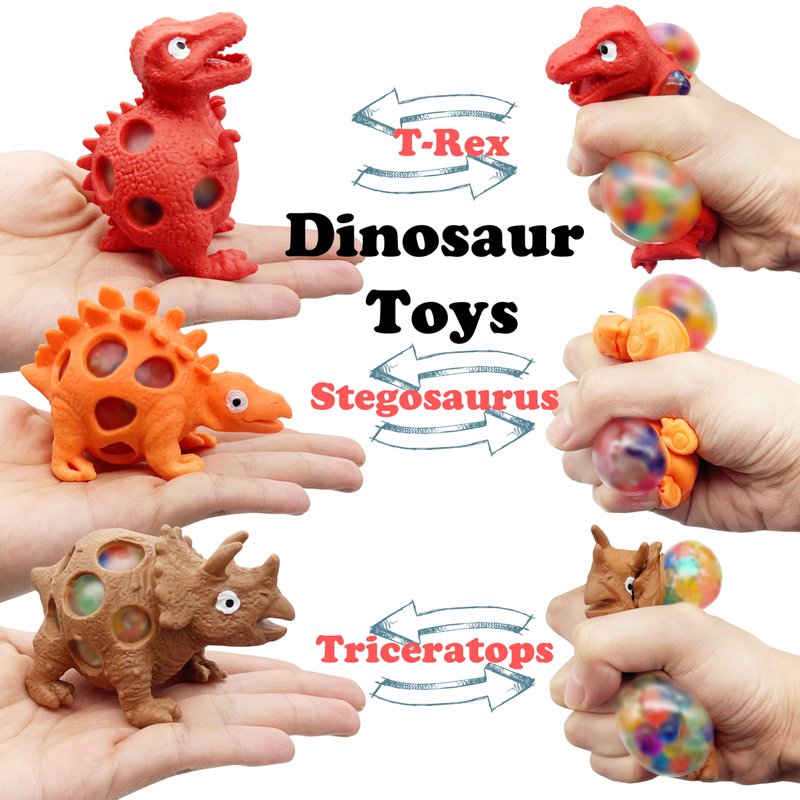 - DINOSAUR STRESS BALLS SET: With our pack of Dinosaur Stress Balls , you'll receive multiple squishy ball incloud Stegosaurus, T. rex, Triceratops, that can be allowing you to share the joy and relaxation with friends, family, or colleagues. They can be used individually or in group activities, promoting bonding and social interaction (For adults only)