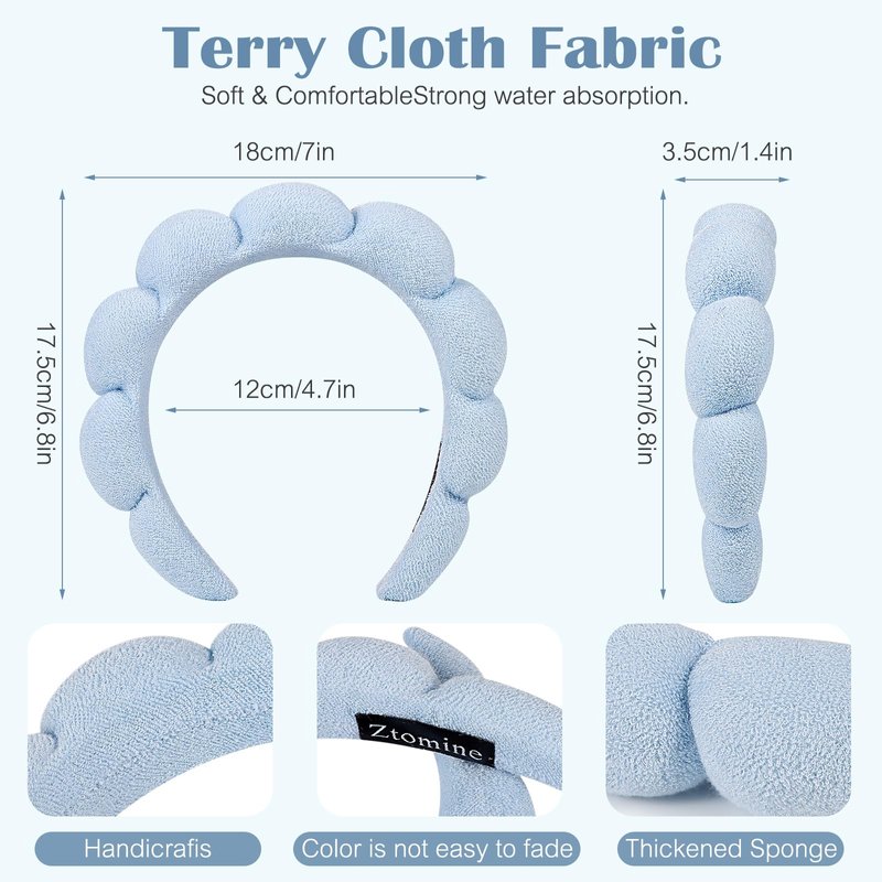 Wear the puff headbands while washing your face, applying skincare peels, serums or masks, getting facials, putting on makeup or sunless tanning.