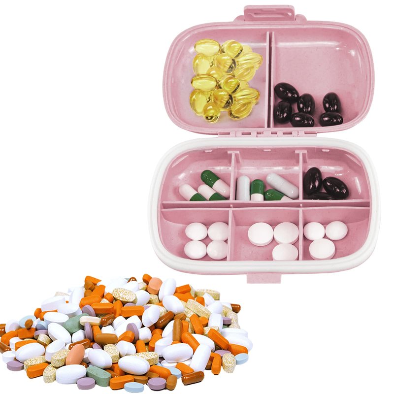 Zuiaso 1Pack Daily Pill Organizer, 8 Compartments Travel Pill Case for Pocket Purse Portable Medicine Vitamin Container Pink