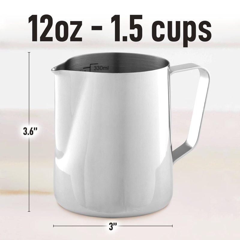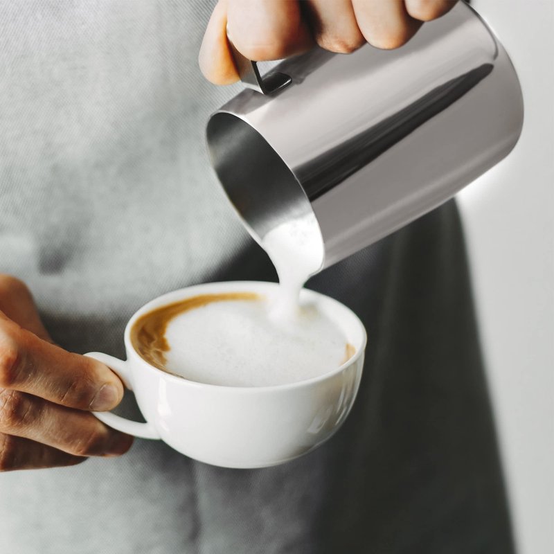 - BARISTA-STYLE COFFEE AT HOME: You’ll get a sense of being at a coffee shop when you make a professional-style coffee using this milk frothing pitcher. Make aesthetically pleasing cappuccinos, lattes, americanos, or hot chocolates in the comfort of your home. This milk frother cup can be used as a milk steaming pitcher, latte art cup, or for measuring liquids and serving milk or cream to your guests.