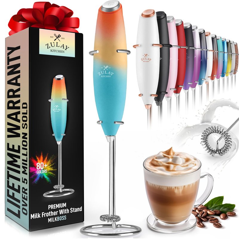 Zulay Kitchen Powerful Milk Frother Wand - Ultra Fast Handheld Drink Mixer - Electric Whisk Foam Maker for Coffee, Lattes, Cappuccino, Frappe, Matcha & Coffee Creamer - Milk Boss Sunrise