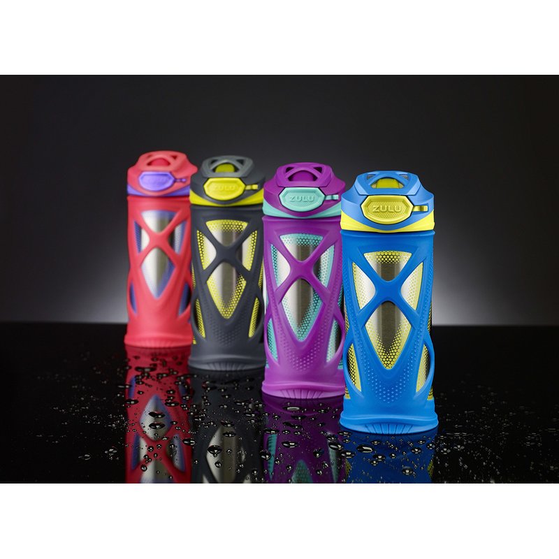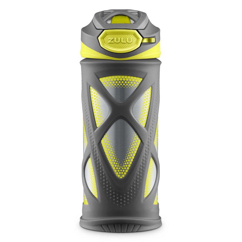 ZULU Echo Kids Vacuum Insulated Stainless Steel Water Bottle with Silicone Sleeve, 12 oz, Grey/Green