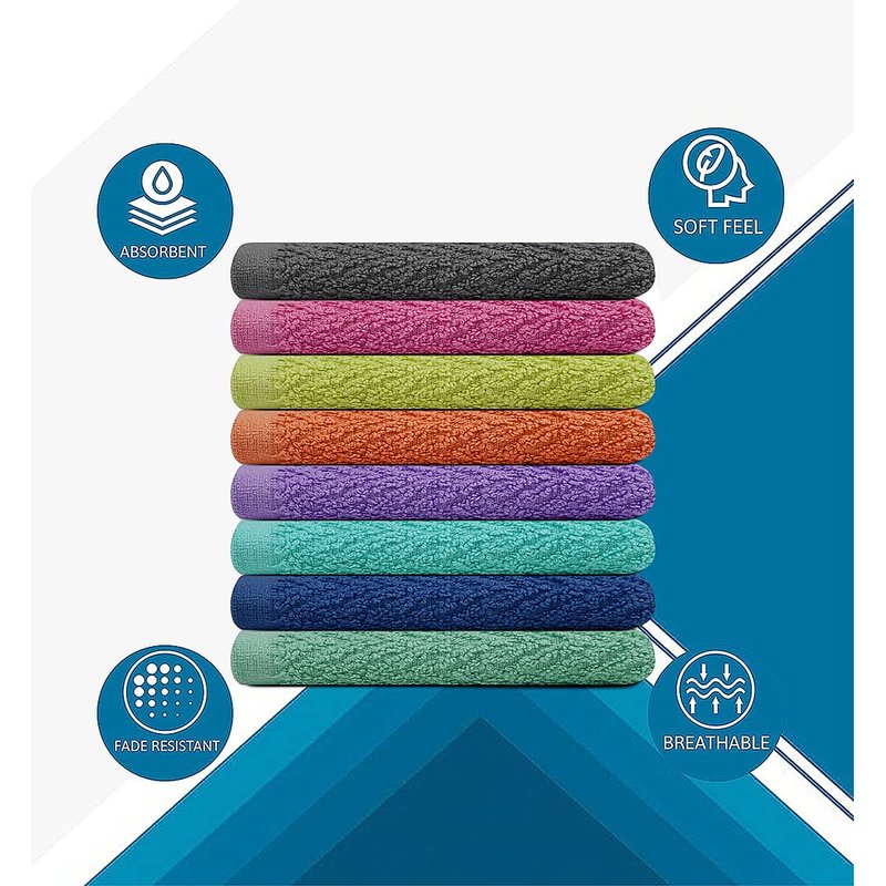- Made of thick 100% ring-spun cotton, the super soft and plush texture gets better over time and makes this face towel a must-have for any home and bathroom. The pack contains 8 pieces measuring 12 x 12 inches in size.
