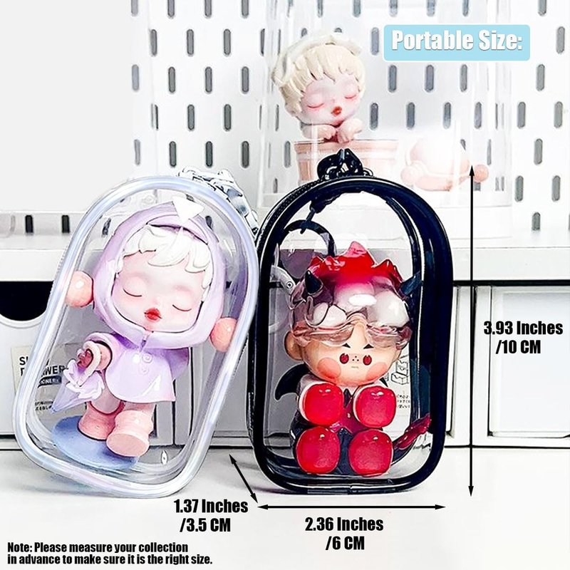 - 【Show your dolls】: The clear doll display case keychain features zipper closure for easy opening and closing. The metal hanging buckle can be hung on backpacks and handbags as decoration, easy to carry