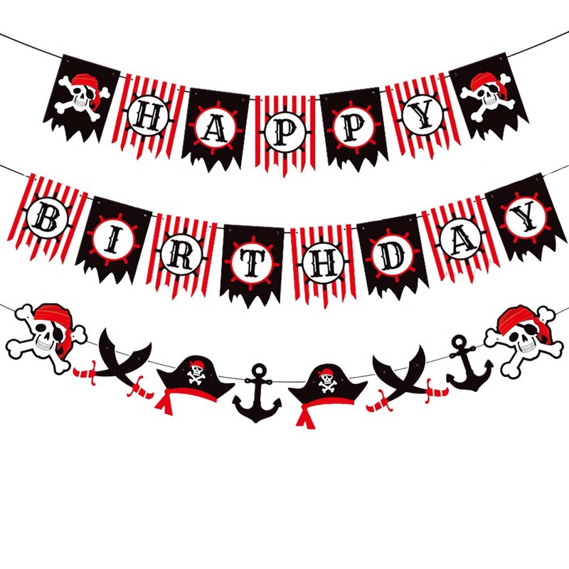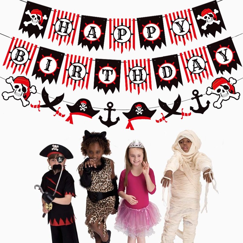 Zwiebeco Red Black White Happy Birthday Banner Pirate Bunting Garland Hanging Paper Halloween Pirate Themed Birthday Party Decoration Supplies