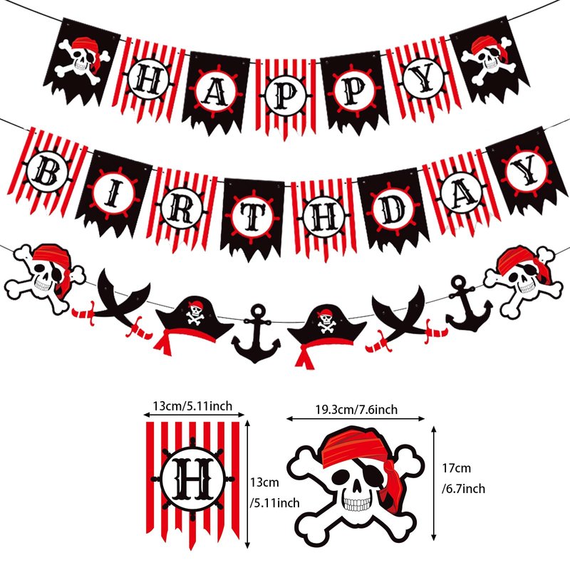 - 🤍【High Quality】This hanging red black white paper pirate themed birthday banner bunting garland decoration supplies are made of high quality cardstock, non-toxic, no odor, safe, environmental friendly, neatly cut, which is durable and reusable. It can enhance your birthday party atmosphere.