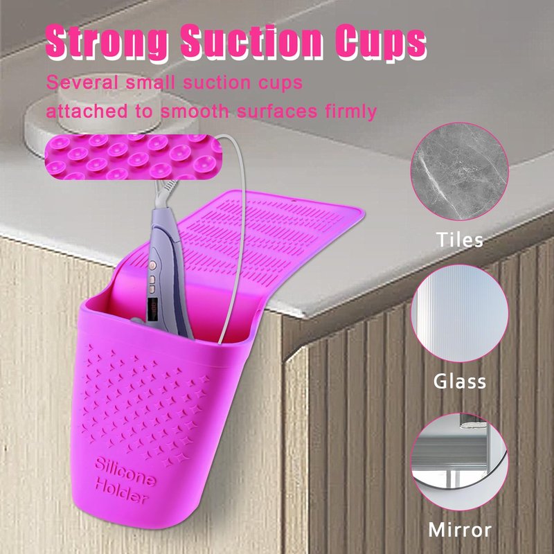 Hot Iron Holster, Silicone Hot Hair Tools Holder with Suction Cup Wall Mount Styling Tool/Flat Iron/Curling Iron/Hair Straightener Holder Organize