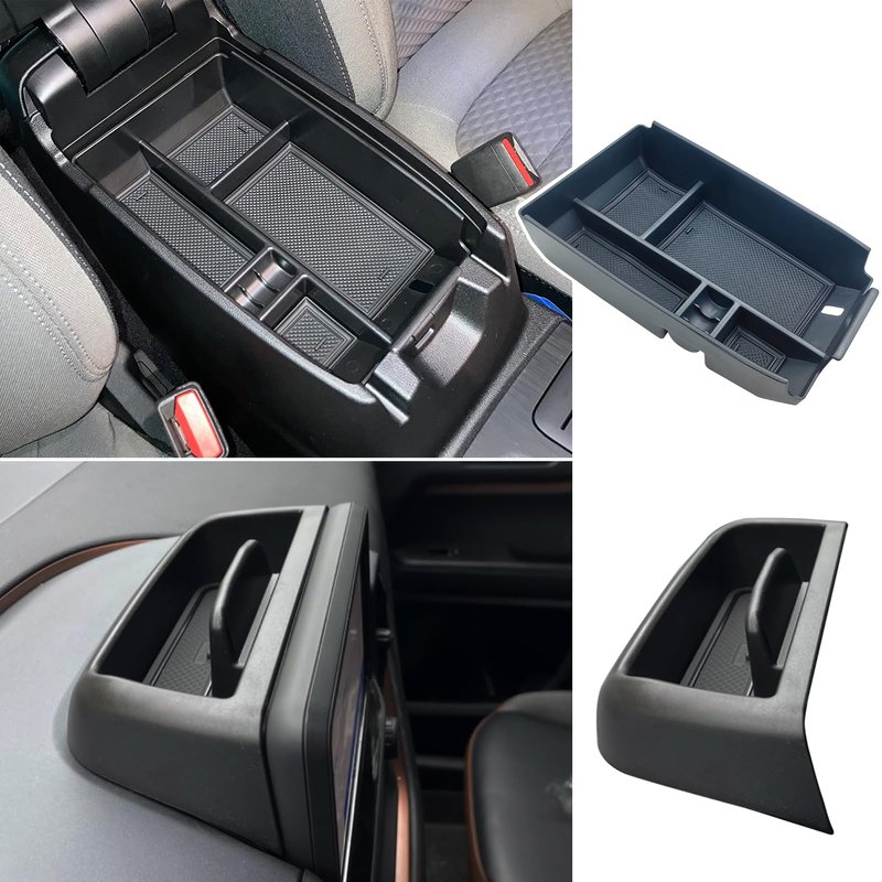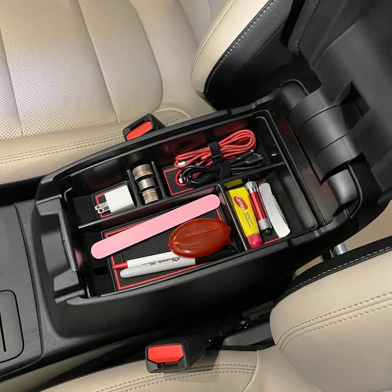 - đăCustomized DesignăCenter console storage tray perfectly matches the armrest case, the tray is equipped with non-slip rubber pads, the vehicle can reduce the noise when moving the items during the driving process, making the driving more comfortable.