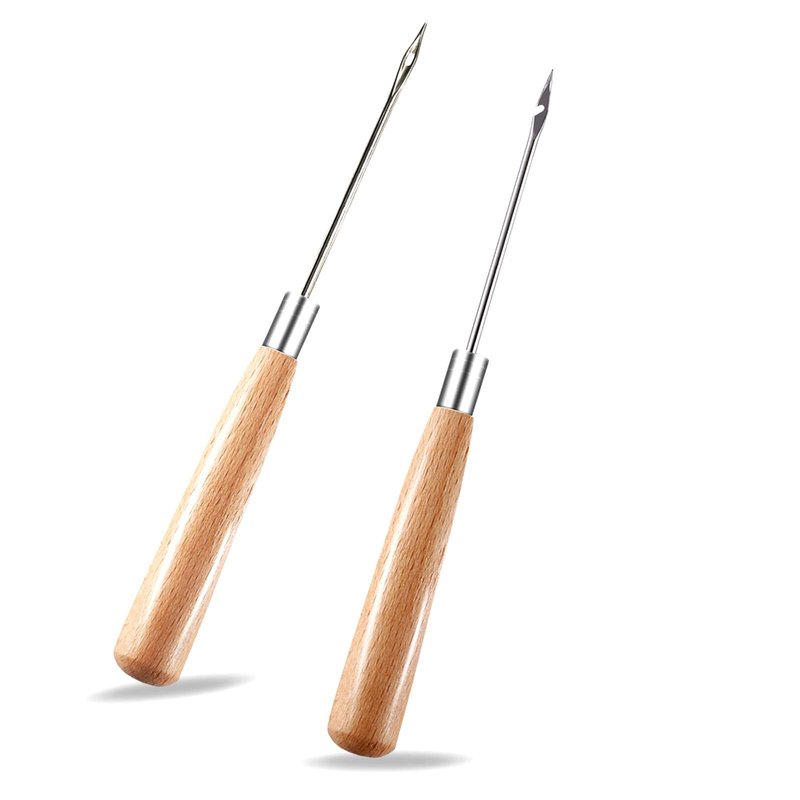 Zxiixz 2 PCS Awl, Leather Sewing Awl with Wood Handle, Hollow, Speedy Stitcher Sewing Awl for DIY Leather Sewing & Stitching
