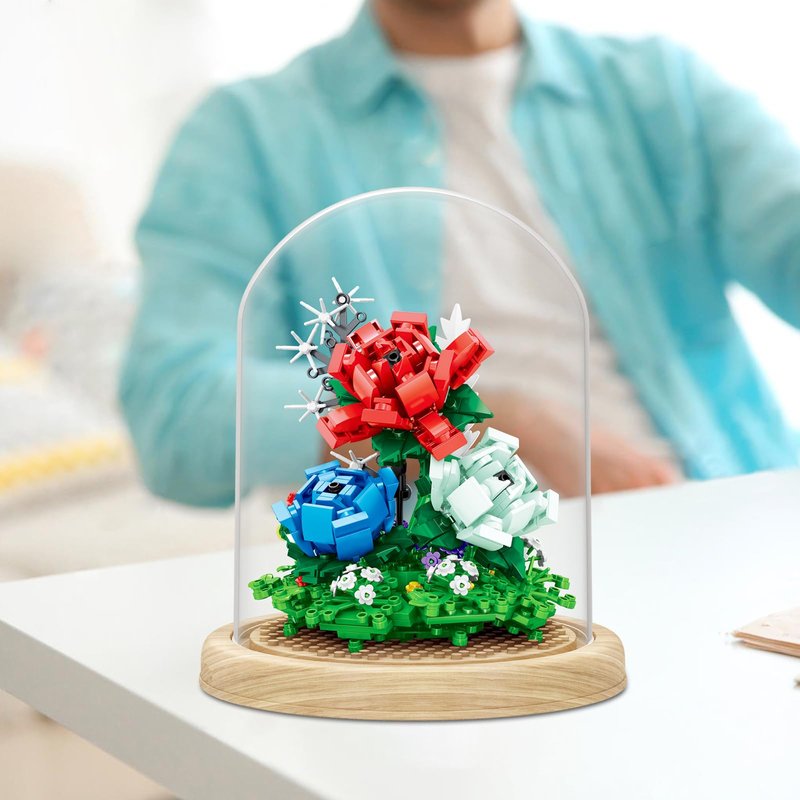 ZYLEGEN Rose Bouquets Building Toy with Glass Dome,Bonsai Tree Building Blocks Toy for Home Décor,Botanical Collection Idea for Mom Her Lover Women(624Pcs)