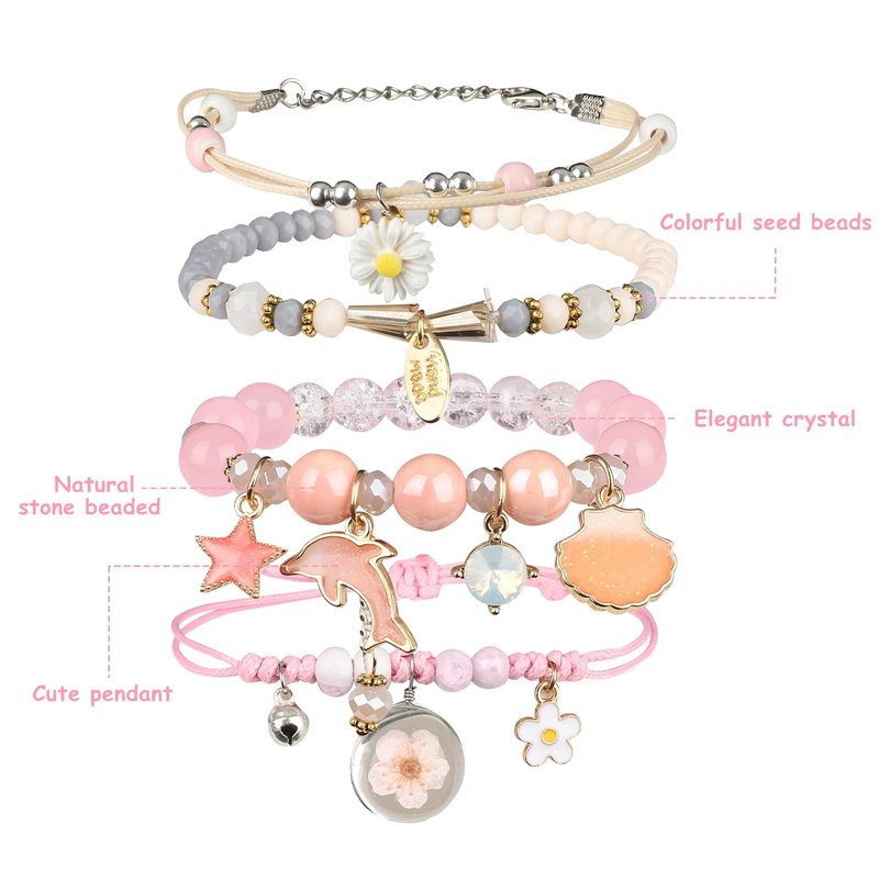 ZYLLGLOW 4 Pcs Beaded Cute Bracelets For Teen Girls Women Hand Made Adjustable Bracelets Anklets Gifts For Friends