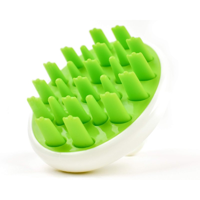 Zyllion Hair Shampoo Brush and Scalp Massager Care for Dandruff Removal, Scrubber, Hair Growth and Exfoliator with Flat and Pointed Soft Silicone Bristles for Women and Men - Green (ZMA-12-GR)