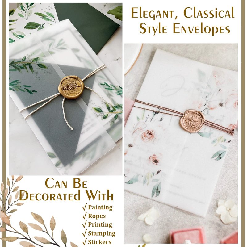 - 💌Delicate DIY Options: You can make interesting handcrafted designs with transparent vellum paper. Drawing and writing can be done on the paper. Envelopes become beautiful and elegant with wax seals or ribbon seals. You can DIY unique and interesting invitations.