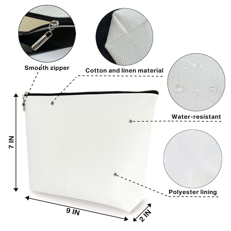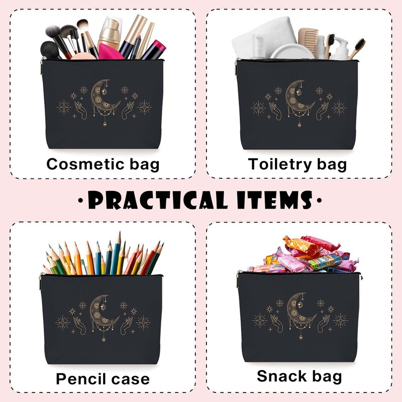 👏𝗦𝗨𝗜𝗧𝗔𝗕𝗟𝗘 𝗦𝗣𝗔𝗖𝗘 Measures 9x7x2 inches. It easily holds all your makeup, toiletries, snacks, travel essentials and anything else you need and is easy to carry. 😊𝗣𝗥𝗘𝗠𝗜𝗨𝗠 𝗠𝗔𝗧𝗘𝗥𝗜𝗔𝗟 The cosmetic bag is mainly made of canvas material, which is of reliable quality, dustproof and waterproof, and can easily protect your personal belongings. 👍𝗣𝗥𝗔𝗖𝗧𝗜𝗖𝗔𝗟 𝗜𝗧𝗘𝗠𝗦 This bag can be used not only as a cosmetic bag, but also as a travel bag, wallet, small bag, storage bag, and has a wide range of uses. 🎁𝗣𝗘𝗥𝗙𝗘𝗖𝗧 𝗚𝗜𝗙𝗧 Suitable as a gift for family, friends, colleagues, such as birthdays, Thanksgiving, Christmas, New Year, Valentine's Day, weddings, anniversaries, etc. 🌟𝗦𝗣𝗘𝗖𝗜𝗔𝗟 𝗗𝗘𝗦𝗜𝗚𝗡 Each cosmetic bag is carefully designed, whether for personal use or as a gift, the interesting patterns and themes of the cosmetic bag reflect your unique taste.