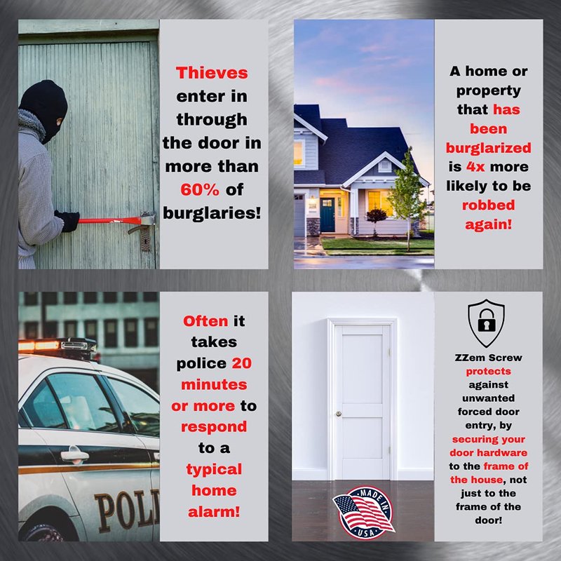 REVOLUTIONARY DOOR REPAIR AND SECURITY HARDWARE: By securing your strike plate, dead bolt, and hinges a total of 3 inches into the frame of the house, ZZem Screw door security hardware, will secure your doors from forced entry.